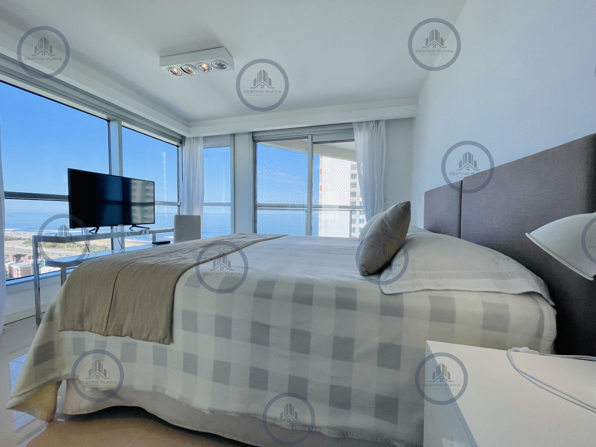 Muy buena planta distribuida en tres dormitorios que se funden en el horizonte marino, el dormitorio principal en suite con salida al balcón, dos baños completos, más dependencia de servicio con baño y toilette. Amplio living comedor con grandes ventanales que proporcionan una iluminación natural espectacular mirando el mar hacia La Barra de Punta del Este. Cocina definida con doble circulación y vista al mar. Espacioso balcón con parrillero propio.